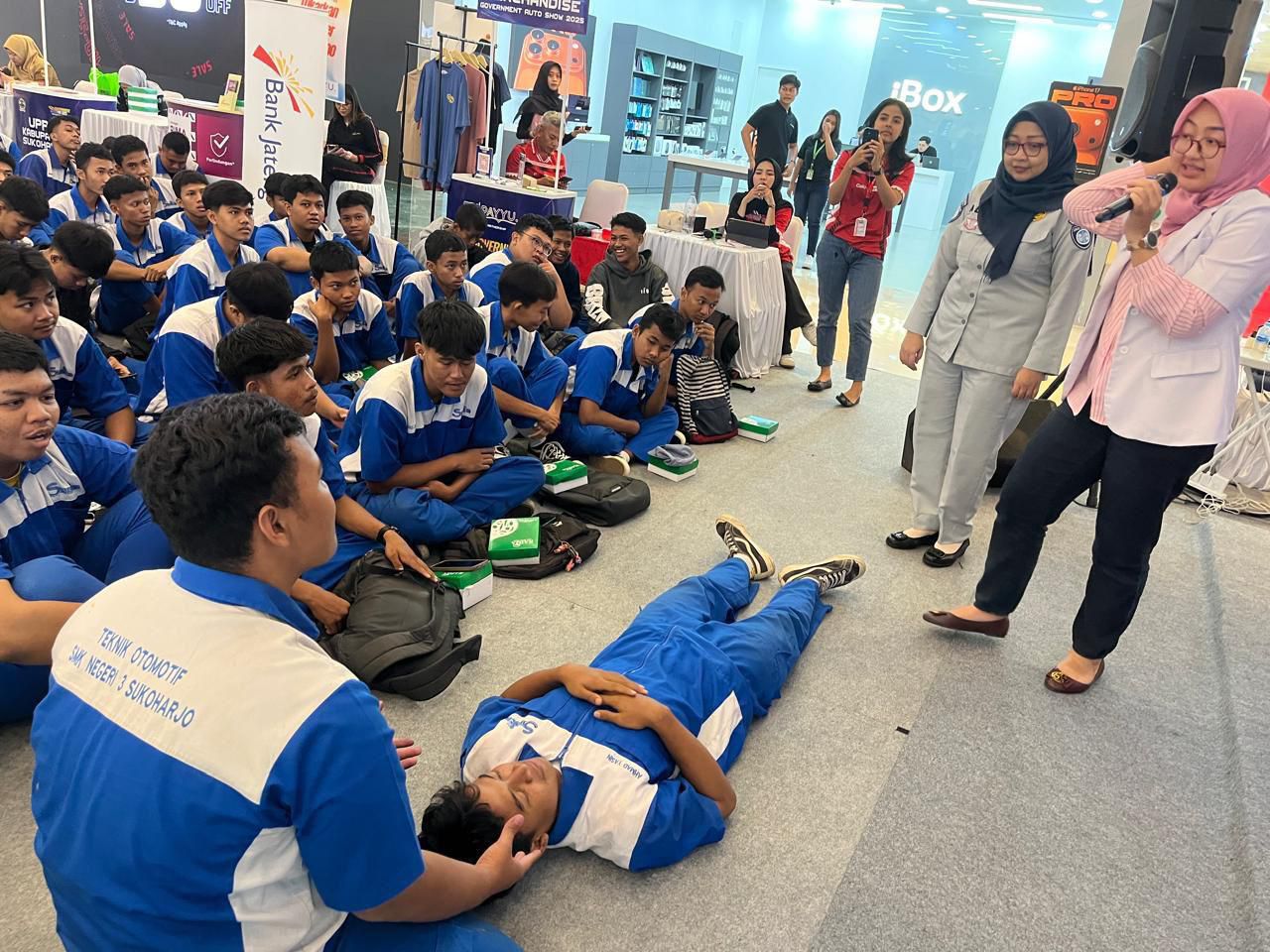BUMNREVIEW.COM, Jakarta – Jasa Raharja Cabang Sukoharjo bersinergi dengan RS Indriati Sukoharjo mengadakan kegiatan edukatif berupa Pelatihan Pertolongan Pertama Gawat Darurat (PPGD). Kegiatan ini diikuti oleh puluhan siswa dari SMK Negeri 3 Sukoharjo dan diselenggarakan di atrium The Park Mall Solo Baru pada hari Selasa, 21 Oktober 2025.